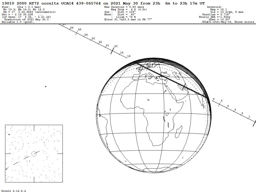 210530 : (19010) 2000 RT72 occults UCAC4 439-065764