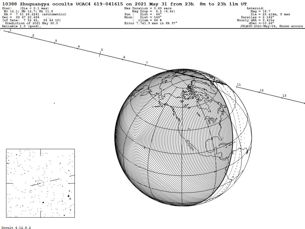 210531 : (10388) Zhuguangya occults UCAC4 619-041615