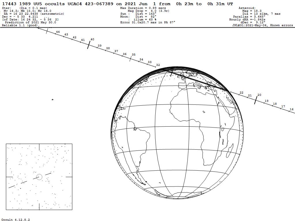 210601 : (17443) 1989 UU5 occults UCAC4 423-067389