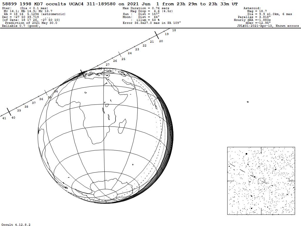 210601 : (58899) 1998 KD7 occults UCAC4 311-189580