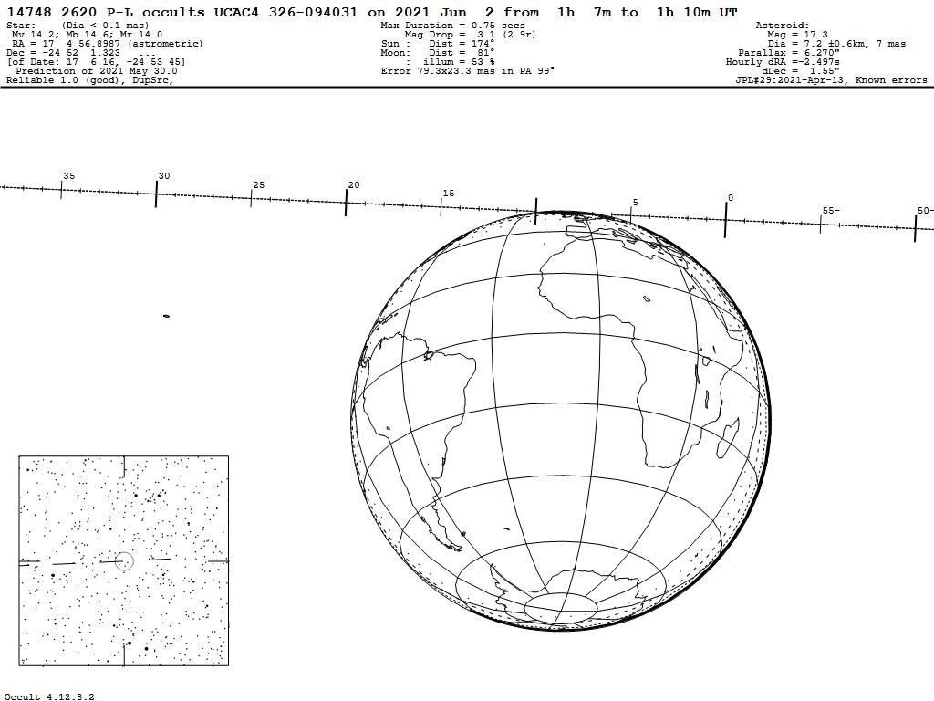 210602 : (14748) 2620 P-L occults UCAC4 326-094031
