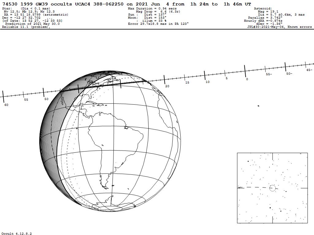 210604 : (74530) 1999 GW39 occults UCAC4 388-062250
