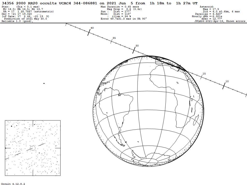 210605 : (34356) 2000 RR20 occults UCAC4 344-086881