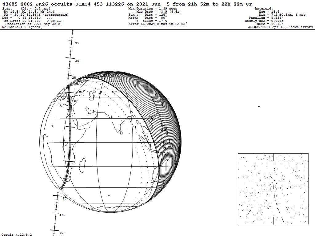 210605 : (43685) 2002 JK26 occults UCAC4 453-113226
