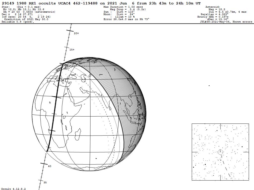 210606 : (29149) 1988 RE1 occults UCAC4 462-119488