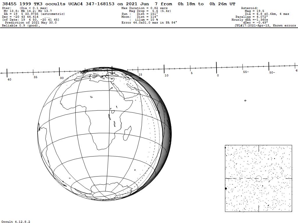 210607 : (38455) 1999 TK3 occults UCAC4 347-168153