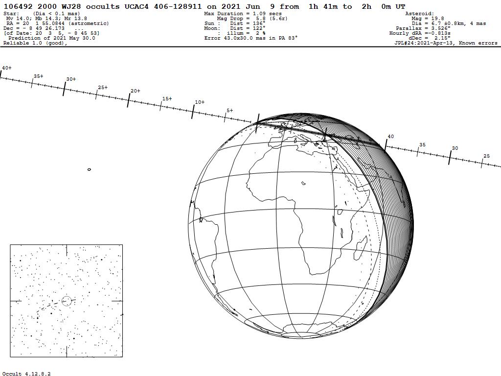 210609 : (106492) 2000 WJ28 occults UCAC4 406-128911