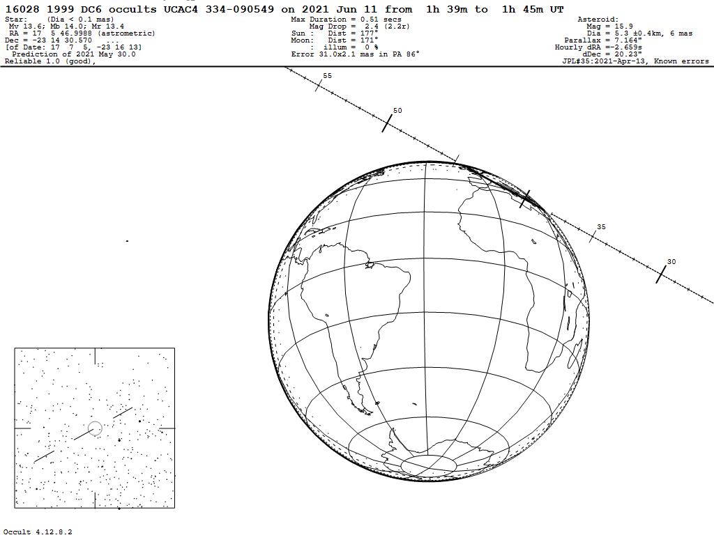 210611 : (16028) 1999 DC6 occults UCAC4 334-090549