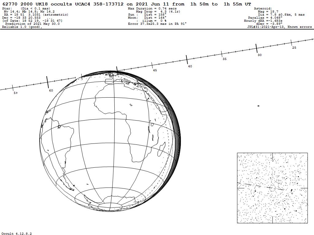 210611 : (62770) 2000 UK18 occults UCAC4 358-173712
