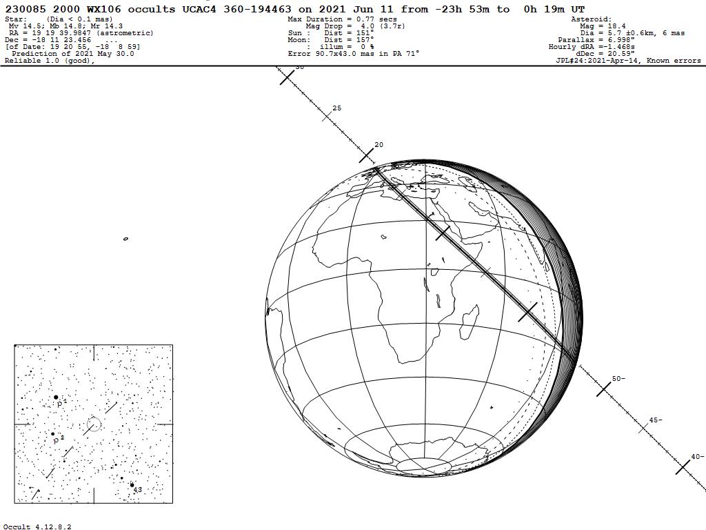 210611 : (230085) 2000 WX106 occults UCAC4 360-194463
