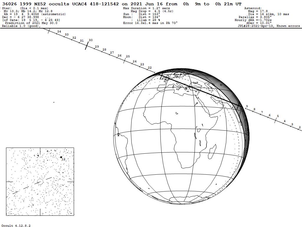 210616 : (36026) 1999 NZ52 occults UCAC4 418-121542