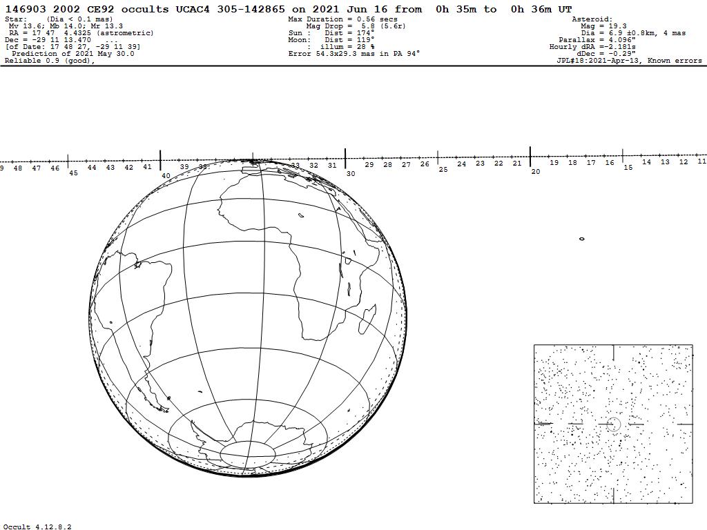 210616 : (146903) 2002 CE92 occults UCAC4 305-142865