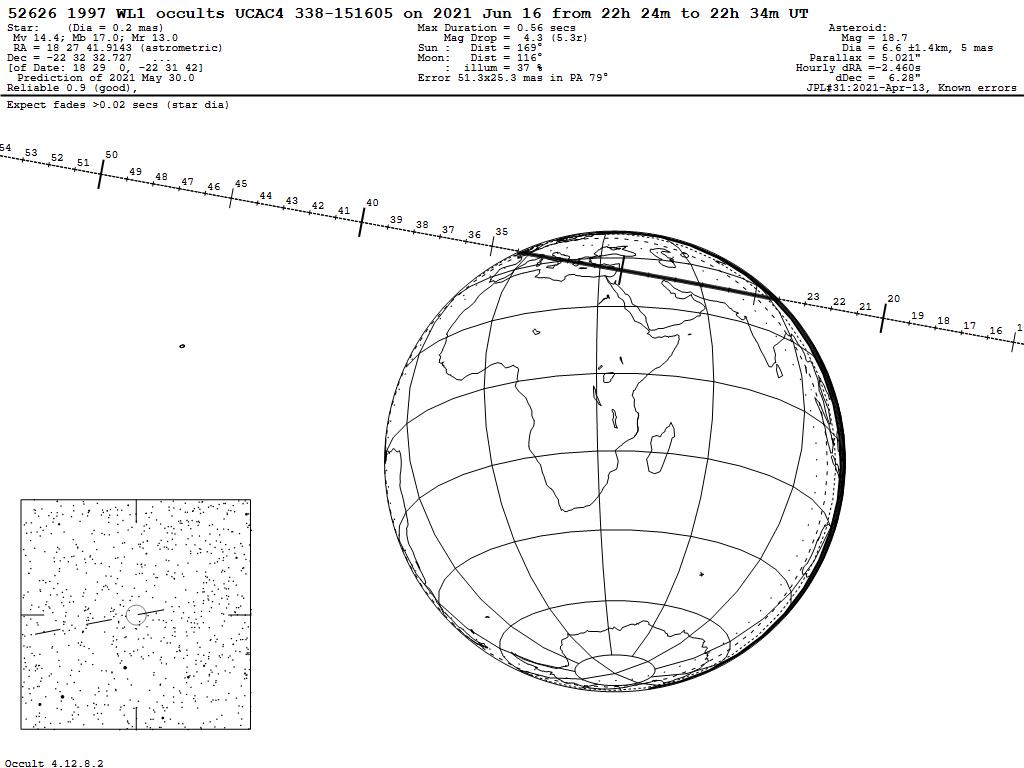 210616 : (52626) 1997 WL1 occults UCAC4 338-151605