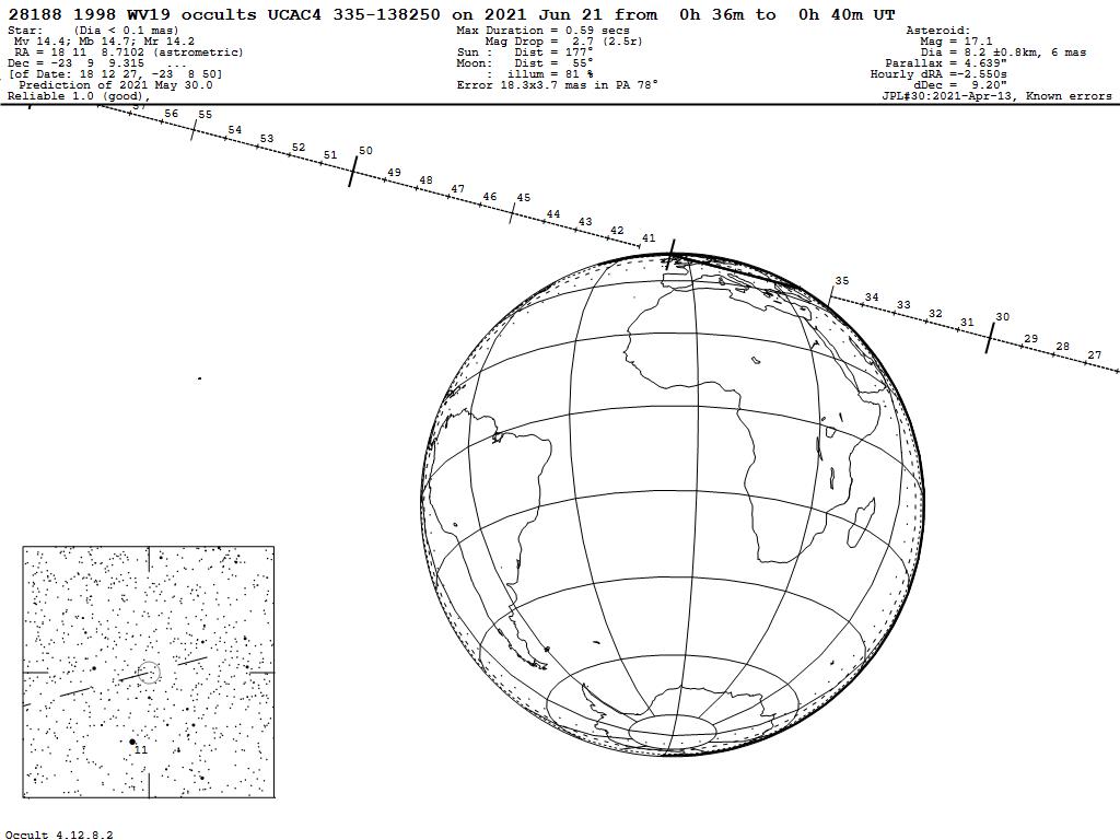 210621 : (28188) 1998 WV19 occults UCAC4 335-138250