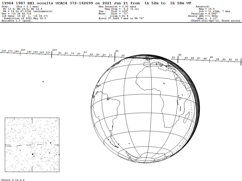 210621 : (19964) 1987 BX1 occults UCAC4 372-162699