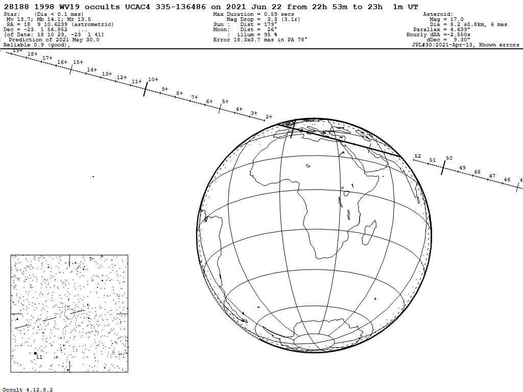 210622 : (28188) 1998 WV19 occults UCAC4 335-136486