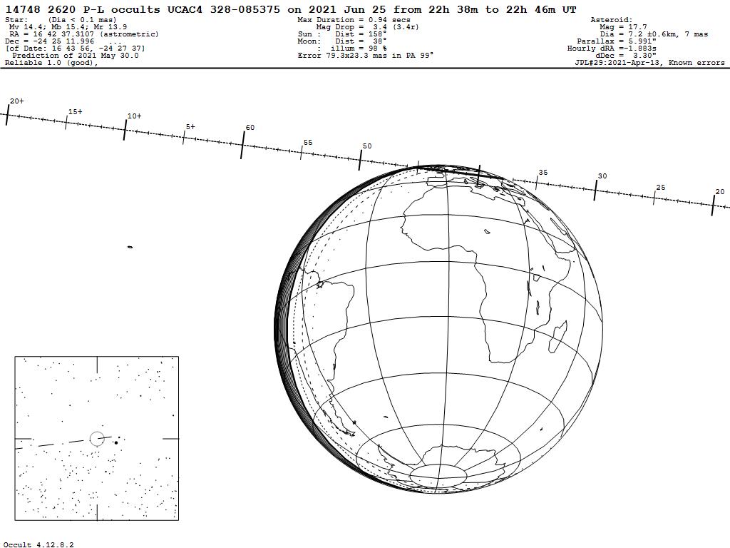 210625 : (14748) 2620 P-L occults UCAC4 328-085375