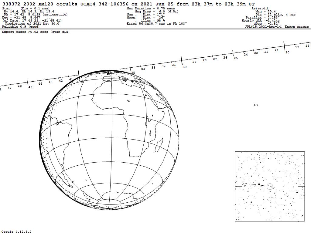 210625 : (338372) 2002 XM120 occults UCAC4 342-106356