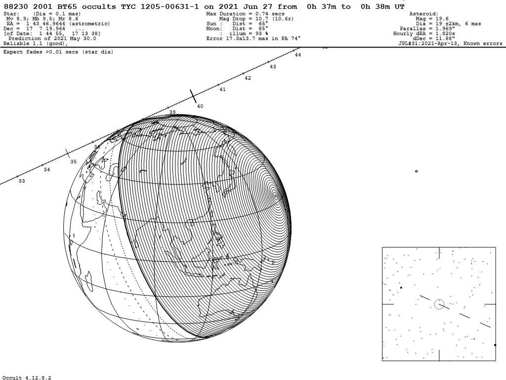 210627 : (88230) 2001 BT65 occults TYC 1205-00631-1