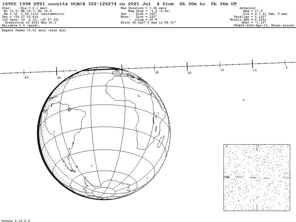 210704 : (16905) 1998 DT21 occults UCAC4 322-126274
