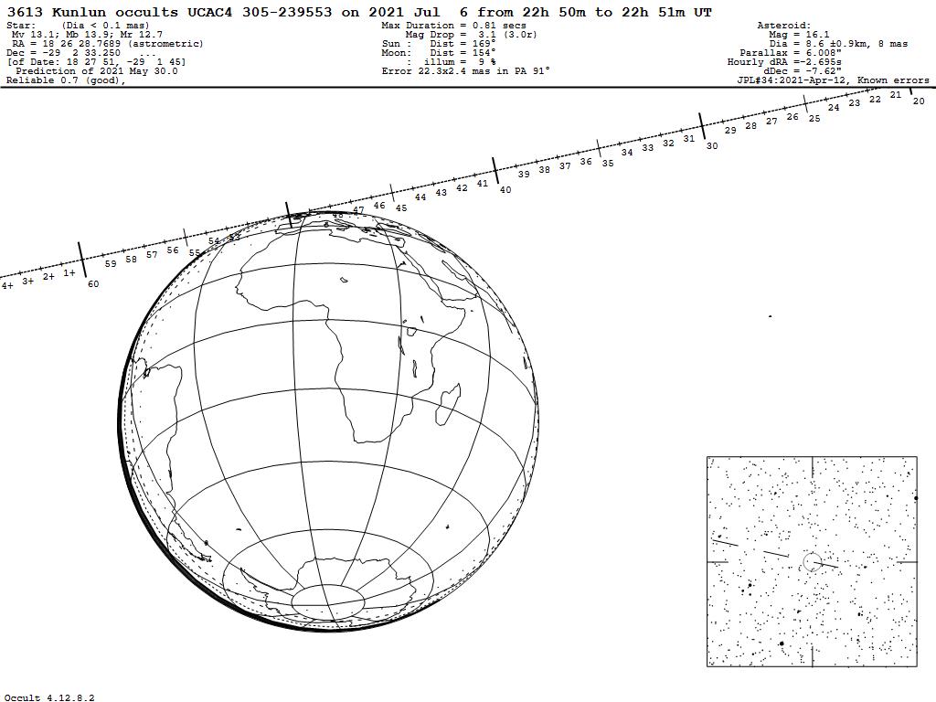 210706 : (3613) Kunlun occults UCAC4 305-239553