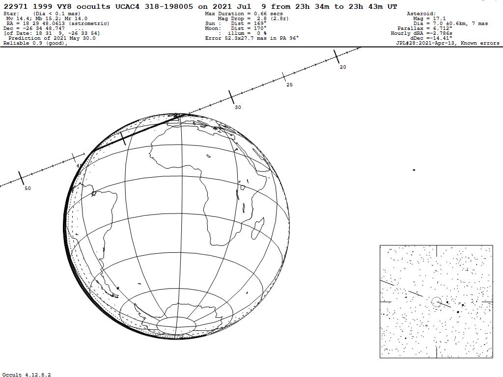 210709 : (22971) 1999 VY8 occults UCAC4 318-198005