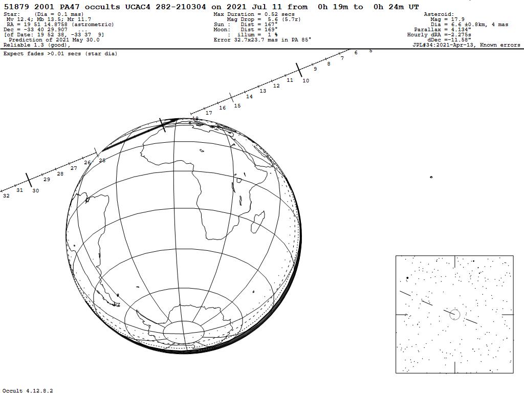 210711 : (51879) 2001 PA47 occults UCAC4 282-210304