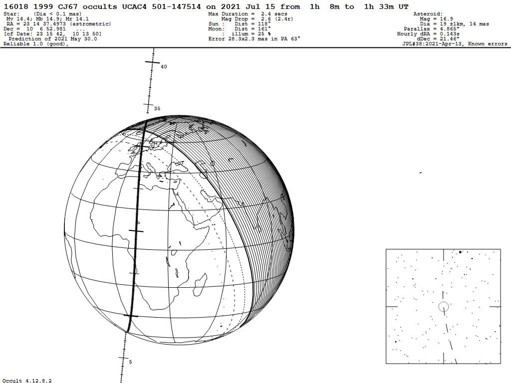 210715 : (16018) 1999 CJ67 occults UCAC4 501-147514