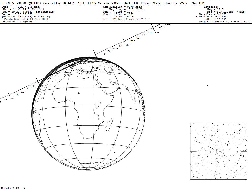 210718 : (19785) 2000 QU103 occults UCAC4 411-115272