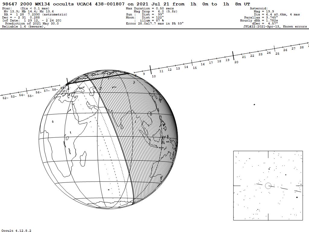 210721 : (98647) 2000 WK134 occults UCAC4 438-001807