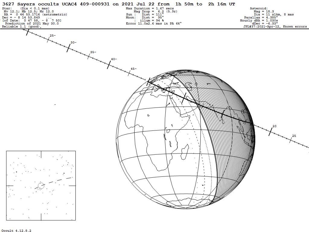 210722 : (3627) Sayers occults UCAC4 409-000931