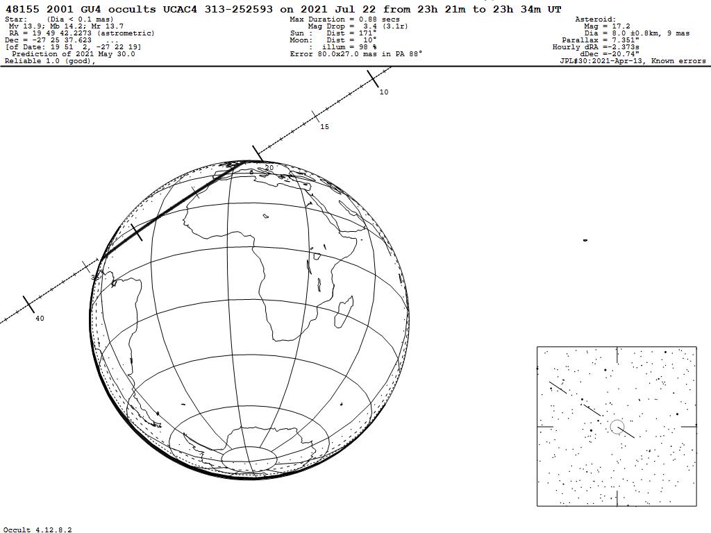 210722 : (48155) 2001 GU4 occults UCAC4 313-252593