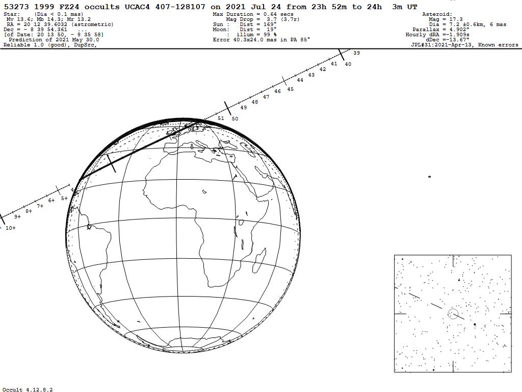 210724 : (53273) 1999 FZ24 occults UCAC4 407-128107