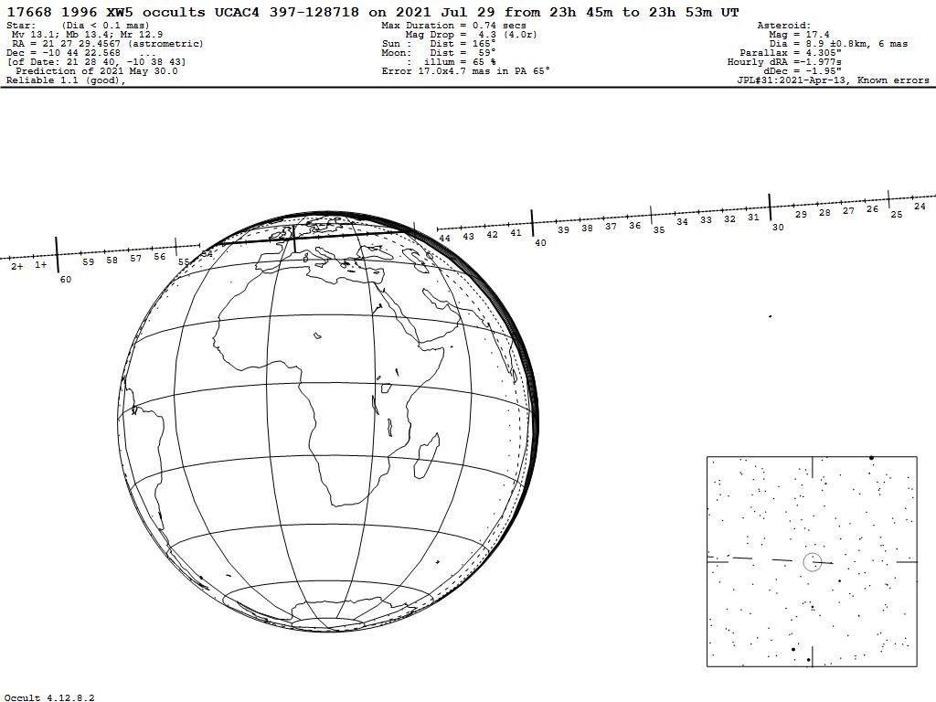210729 : (17668) 1996 XW5 occults UCAC4 397-128718